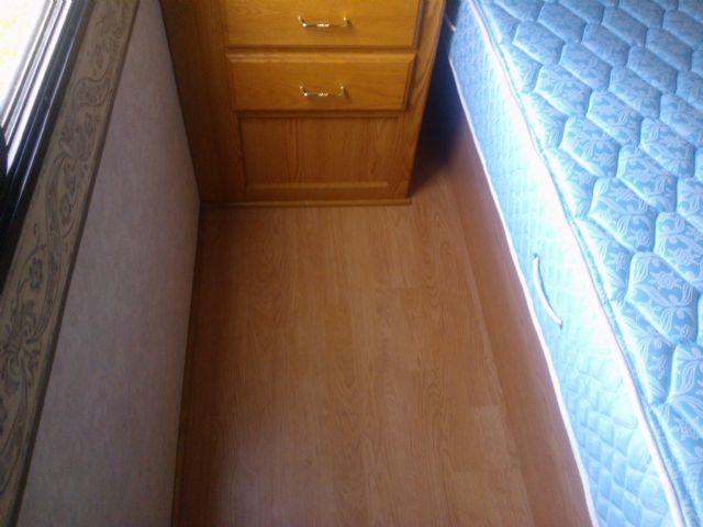 Era un po' di tempo che mia moglie mi tormentava con il pavimento e il colore della tappezzeria del nostro motorhome: si lamentava che la moquette tratteneva troppa polvere, specialmente d'estate al mare, quindi mi sono deciso a sostituirla con un laminato color rovere e ho rifatto la tappezzeria, cambiando tonalità dal colore originale ad un grigio. Lascio a voi il giudizio.