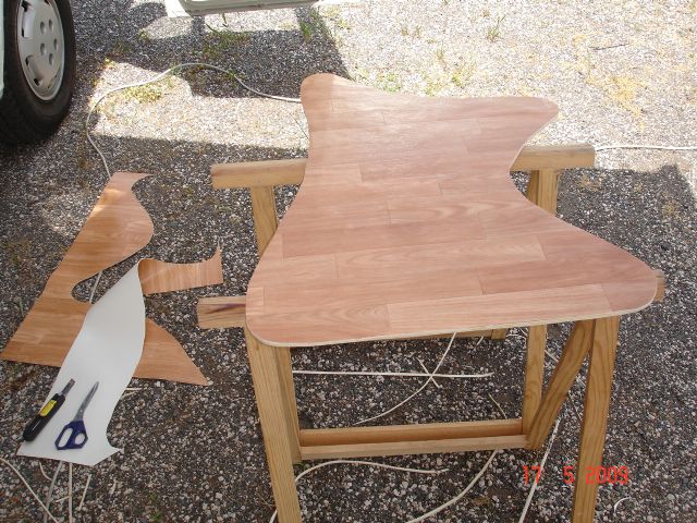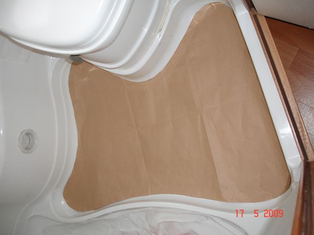 Con della carta da pacchi ho creato una dima, che mi è servita per sagomare la tavola di multistrato...