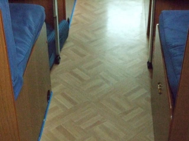 Visto che il vecchio proprietario aveva pensato di abbellire gli interni coprendo il pavimento originale con uno in pvc (a mio avviso senza avere molta pratica nel fai da te), ho dovuto rifare lo stesso lavoro per coprire i danni estetici che aveva creato.