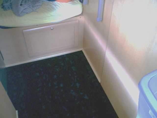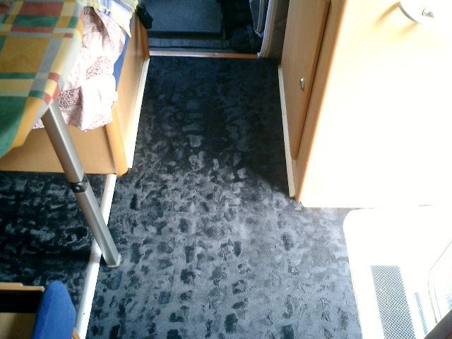Ho voluto rivestire il pavimento del nostro Autoroller 2 per renderlo più "caldo" per le uscite invernali. misono pocurato circa 4 metri di stoffa inifuga lavabile, gommata sotto e facilmente pulibile con acqua e in tinta tapezzeria (nero con riflessi blu). Rilevato misure, tagliato a misura, posizionato e rifinito i bordi con mini-battiscopa il legno (fissato con chiodini piccolissimi).