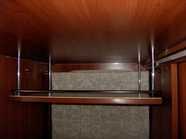 Avendo già realizzato una mensola ai piedi del letto superiore ed avendone apprezzato la grande comdità, ho deciso di realizzarne una anche per il letto inferiore. In questo caso non volevo che la mensola fosse sorretta dalle pareti laterali (principalmente per evitare di lasciare segni in caso di futuri ripensamenti) quindi ho deciso di praticare quattro fori al piano del letto superiore per montare il "sospensione" la mensola ulilizzando quattro spezzoni di perno filettato opportunamente infilati all'interno di tubi cromati.