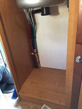 Il cassetto non ha fermi per mantenerlo chiuso (solo una sorta di incastro) per cui dovrò sicuramente pensare a un qualche sistema per mantenerlo chiuso durante la marcia ed evitare sforzi contro la porta dell'armadietto.