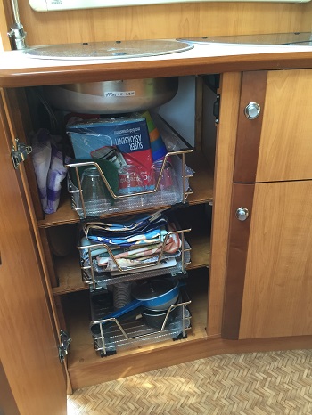 Poichè mia moglie era stufa di avere un mobile sotto al lavello della cucina molto ampio ma poco sfruttabile, mi sono messo di impegno e grazie al supporto di amici sono riuscito ad attrezzare al meglio lo spazio disponibile. Nel mobile era presente un solo ripiano a mezza altezza, io ne ho aggiunto uno (riposizionando entrambi) e ho aggiunto 3 cassetti completamente estraibili acquistati su internet. Il risultato? Giudicatelo voi.