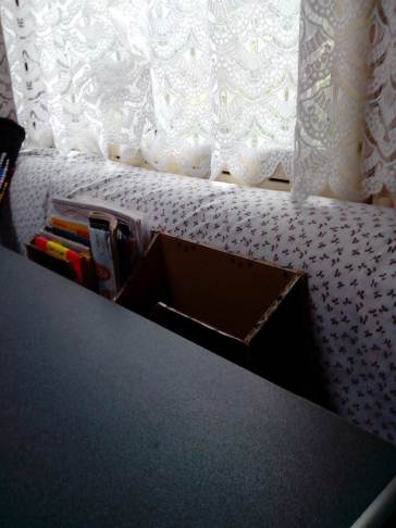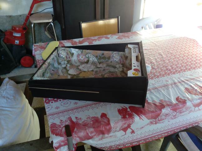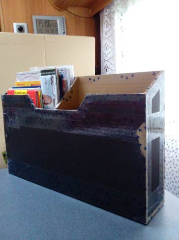 Già che ero in tema di migliorie ho realizzato una scatola in cartone pesante per mettere riviste e cartine da posizionare in fondo al tavolino in posizione di riposo.