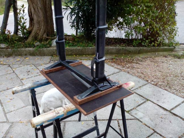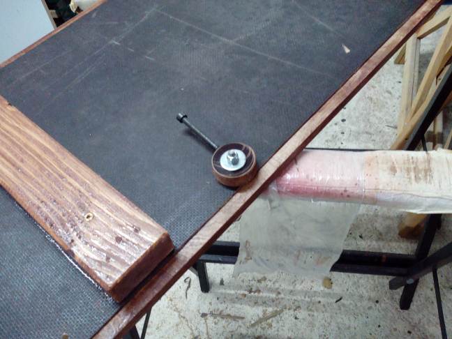 Il tavolo andava spostato spesso per i pasti e la cosa non mi piaceva, così l'ho trasformato in scorrevole con delle guide poste sotto il piano ed un bloccaggio ad eccentrico per tenerlo nella posizione desiderata.