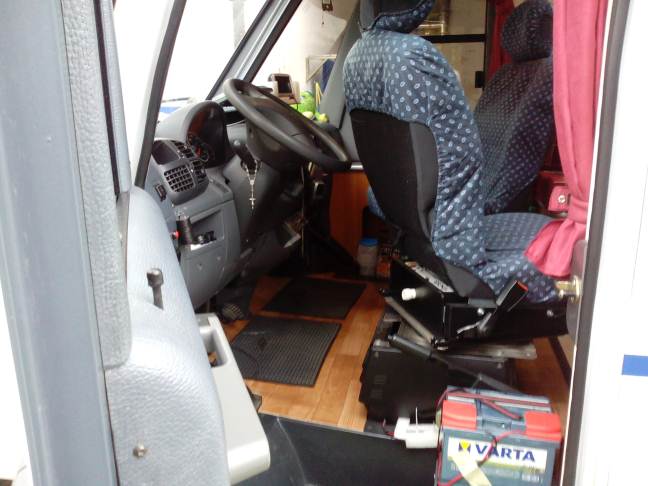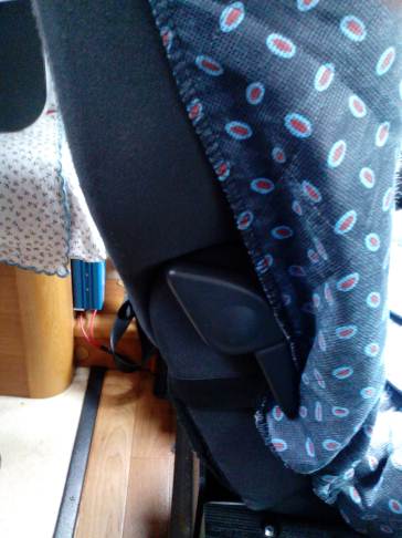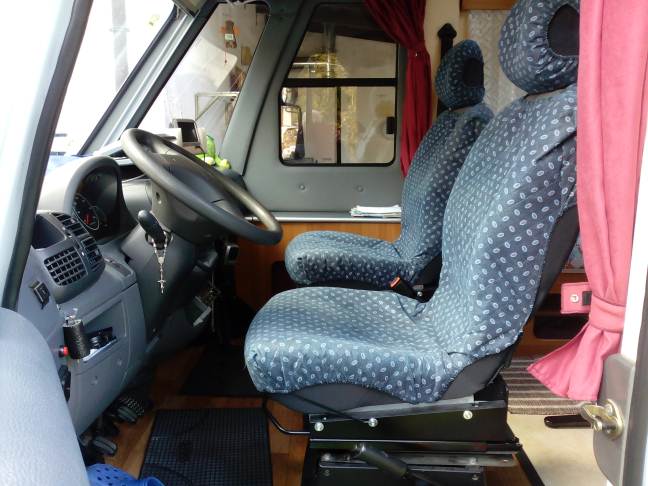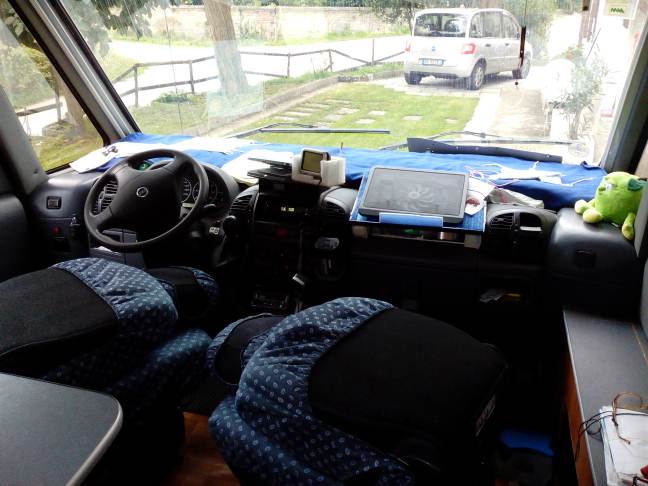Dal momento che viaggiamo quasi sempre in tre, mi capita di dover abbassare il basculante per la notte. I sedili Fasp di serie sono a mio avviso troppo massicci e inutilmente ingombranti, oltre che scomodi da manovrare quando ho necessità di reclinarli. Ho cercato dei sedili alternativi da poter adattare facilmente, di dimensioni più contenute e di più facile manovrabilità in fase di approntamento del basculante che fossero comunque abbastanza comodi durante il viaggio. Ho risolto il problema con due sedili posteriori laterali di una Renault Scenic seconda serie reperiti presso un demolitore ed in ottime condizioni.