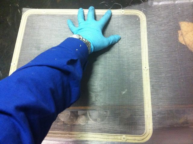 Visto che dovevo smontare tutte le zanzariere dei 4 ablò del mio Laika Ecovip2 del 1993, perchè sporche dall'interno, ho deciso di cambiare la rete che in alcuni era in condizioni pessime. Acquistato un pezzo di zanzariera in metallo delle dimensioni di 2x1,20 metri (ho intenzione di cambiare anche quella della porta), pagata 6 €, ho cominciato a smontare la vecchia rete dai telai. La rete risulta fusa nella plastica e quindi l'unico modo che ho pensato per incollarle era la colla a caldo.