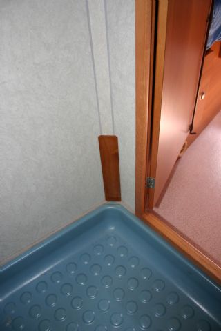 Cari amici, avevo questo problema: come fermare il portaspazzolino (metallico) del WC. Ho pensato all'angolo interno della porta. Ho sagomato una tavoletta in ciliegio con angoli a 45° (foto n.1). Ho inserito delle calamite nella parte posteriore facendo degli incassi nel legno (foto n. 2), bloccate con colla a caldo. Ho fissato la tavoletta nell'angolo prescelto con colla a caldo (foto n. 3,4). Ecco il risultato finale nella foto n. 5 e durante il primo viaggio di prova, non si è staccato. Un saluto Luciano