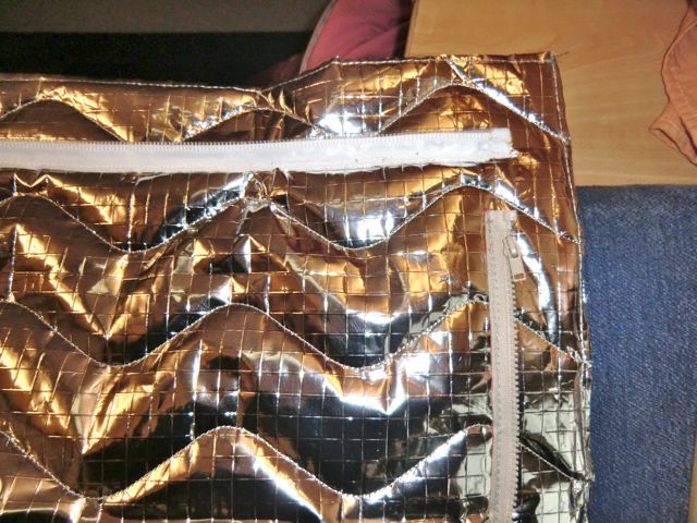 Il materiale usato è 2,50 metri lineari di telo 7 strati, reperibile negli shop per camper, 2 cerniere (zip) con cursore double-face di grosse dimensioni, un profilato di legno di 30X15 mm, una decina di bottoni clip e ovviamente la macchina di cucire di mia moglie (che la compra ma non sa usare! Le donne...).