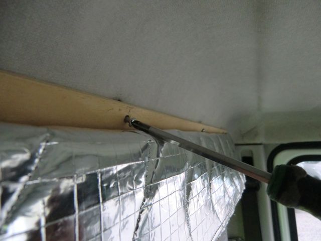 Dopo aver preso le misure della cabina del mio ducato x244, ho rifilato alla buona il telo che era eccessivamente largo. (Ricordo che ho comprato 2,5 metri lineari per una altezza fissa di 160 cm, che è lo standard del telo in questione che viene venduto in bobina nei negozi specializzati)
