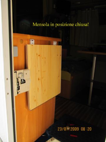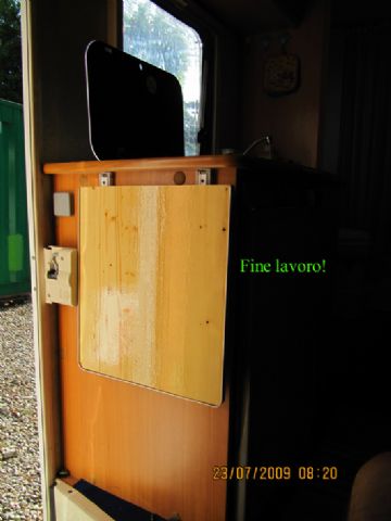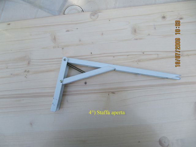Non avendo molto spazio nella parte cucina, ho creato una mensola con staffe pieghevoli, utile come piano d'appoggio!
