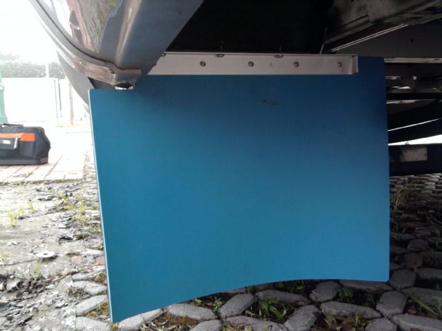 Sempre per i posteriori ho tagliato un profilo angolare di alluminio ed un profilo piatto per fissare a "Sandwich" la gomma, per gli anteriori con del profilo piatto ho ricavato due priastrine di supporto, forate in coincidenza dei fori sul parafango e limato i fori per ricavare la sede quadrata per le viti di fissaggio (a testa piatta con quadro sottostante).