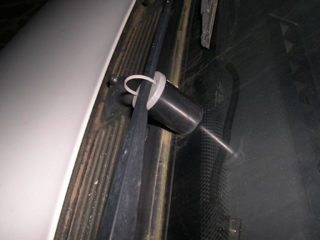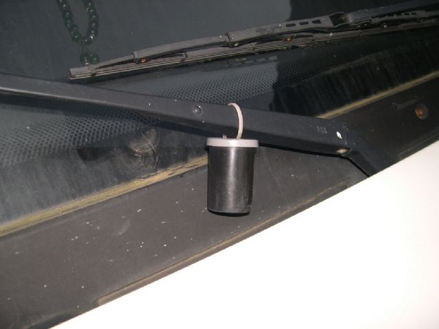 Per la ritenuta ho utilizzato le fascette da elettricista, così che, al momento di pulire il vetro, basta attivare il tergicristallo, i due contenitori saltano via ma rimangono attaccati grazie alla fascetta (3°foto) e non danno assolutamente fastidio nel funzonamento.
