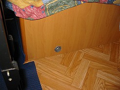 Ho forato la base della dinette e ho canalizzato l'aria all’interno della dinette stessa, senza che alcun tubo passi sul pavimento e possa intralciare il “traffico”, fino a metà della cellula abitativa.