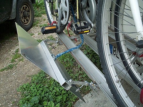 Ecco una serie di immagini autoesplicative che descrivono il meccanismo - autocostruito - per il fissaggio del cartello di segnalazione di carichi sporgenti.