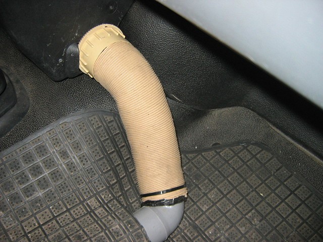 Per risolvere il problema del riscaldamento in viaggio senza ricorrere al riscaldatore, funzionale ma pericoloso (in caso di rottura accidentale di un tubo di derivazione, addio motore!), ho deciso di perfezionare un’idea già nota, con una soluzione semplice, economica ed efficace. Pochi euro, ottima funzionalità e soprattutto la possibilità di togliere tutto in primavera! Naturalmente è necessario tappare le bocchette inferiori con dei tappi plastici. Io, poi, ho utilizzato una bocchetta di riscaldamento Truma per derivare dalla bocchetta inferiore destra il manicotto che porta aria calda al “periscopio” posteriore! Periscopio che ruotando può indirizzare aria dove più occorre! Ecco le foto: