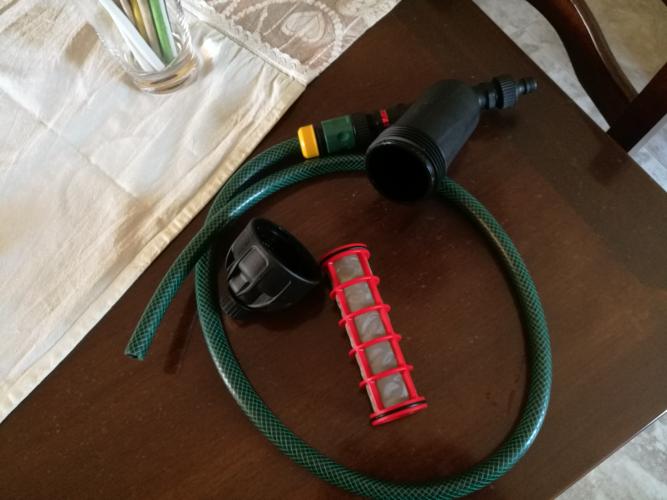Volendo esistono appositi filtri gia dotati dei normali attacchi tipo Gardena: Io trovo molto comodo un tappo di carico acqua con attacco tipo gardena, che metto al posto del tappo normale quando devo fare acqua (controllareche sia il modello con sfiato!): simile a questo, così non cade a terra la canna dell'acqua, in tal caso basta un pezzetto di tubo con due femmine da collegare tra tappo e filtro, poi su tutti i tubi ho le femmine. Non vorrei solo che il filtro in certi casi rallentasse troppo il flusso di carico se l'acqua ha poca pressione, o al contrario se ne ha molta crea troppa pressione nel tubo di carico.