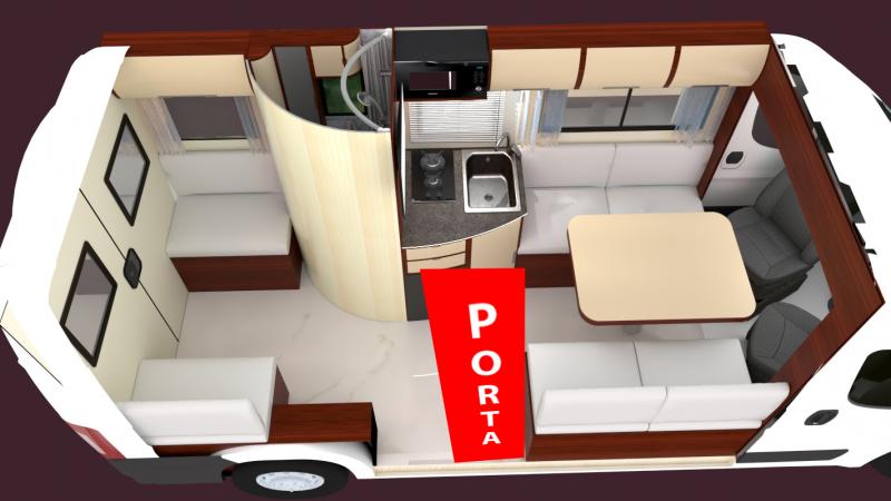 e da una vita che sogno un camper, e non potendo permetterlo, mi diverto a disegnarli ... volevo farvi vedere il progetto (su un ducato L2H2) e se magari ci sono delle incoerenza, di riferire . in più volevo saperese nei furgonati è possibile ritagliare una porta fuori dal portellone principale laterale (vi allego le immaggini così capite meglio. amo la dinette face to face e nei furgonati è quasi un tabù.
