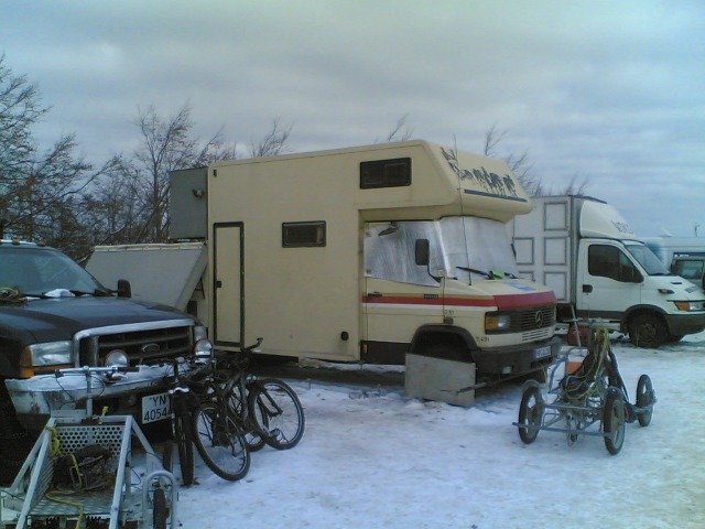Come camper turisico ero da solo [V] Lo spettacolo comunque valeva il viaggio. Vi ho pensato e ho fotografato qualche camper-canino. e una carrozzetta per farsi tirare dai cani