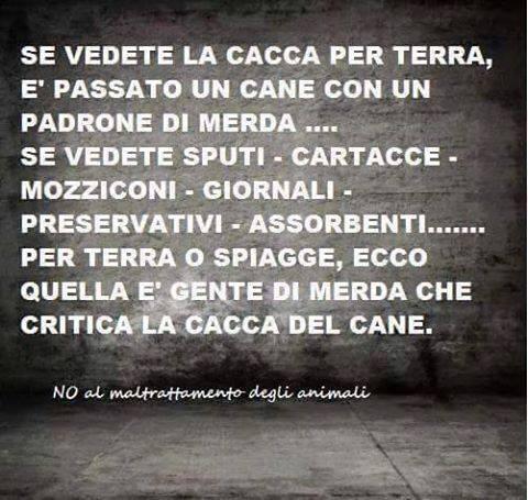 Risposta a:Messaggio di dethron inserito in data 15/06/2015 09:25:34 (Visualizza messaggio in nuova finestra) Straquoto... il bello e il cattivo tempo, non dura tutto il tempo Edited by - Yuma-58 on 15/06/2015 15:04:54...coerente con l altro tuo post dove fai il predicozzo... Posted - 15/06/2015 : 07:21:13Risposta a:Messaggio di salito inserito in data 14/06/2015 22:38:25 (Visualizza messaggio in nuova finestra) Quanto sarcasmo a basso costo vedo nei tuoi post... Precisa... non fare di un'erba tutto un fascio... il sottoscritto i sacchetti li porta sempre dietro e le cacchette me le porto via... il bello e il cattivo tempo, non dura tutto il tempo 22