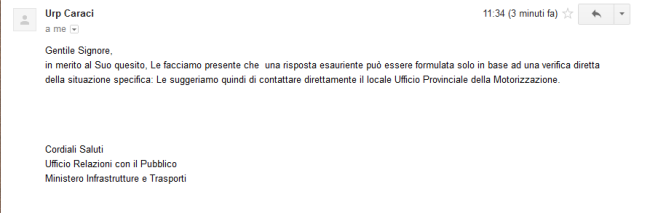 Bene ora allerta la motorizzazione che dice che per loro C o CP non ha significato