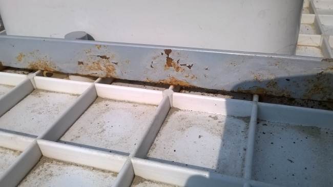 mai di niente ( della serie procuriamoci il lavoro) il perché il telaio si è ridotto cosi sto pensando a varie cose salsedine? io vado spesso mari del nord oppure colpa del acqua calcarea? oppure colpa dei sali disinfettanti? oppure colpa di una carenza costuttiva? (ferro troppo grasso e la verniciatura non ha attaccato bene)oppure trascuratezza nella costruzione? dalle scritte interne mi sembra di capire costruito in sud america e non come il 3 qui in italia purtroppo non mi è dato di saperlo e lo accetto come un dato di fato (sfortuna) certo una letterina in azienda la manderò la cosa che mi scoccia è che in assistenza non mi hanno detto niente ( mai più)
