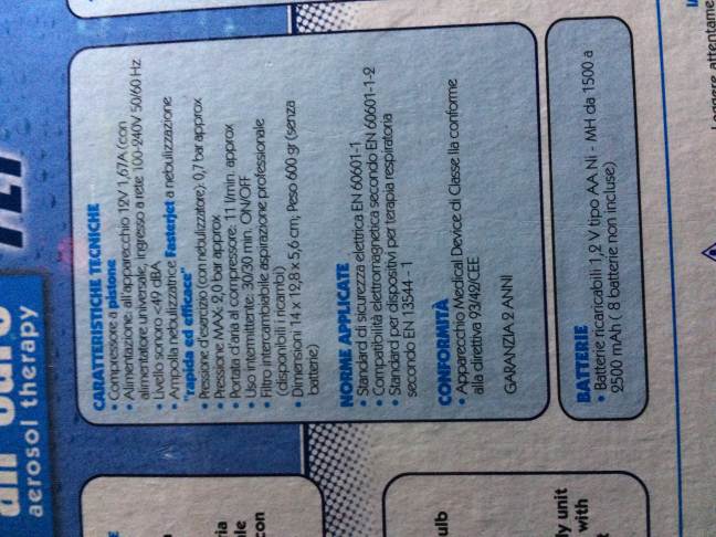 LAICA AEROSSOL MD6026 Ha un alimentatorino esterno che sembra sia a 12 volt. Alcuni siti internet vendono anche batterie ricaricabili a 12 volt per questo oggetto e a giudicare dalle dimensioni di quelle batterie l'assorbimentodovrebbe essere limitato. Prova a cercare in rete o se lo vedi in vendita in qualche negozio leggi sull'apparecchio che alimentazione vuole. La nuova moda di non dare le caratteristiche elettriche delle apparecchiature elettriche ha contagiato anche l'azienda costruttrice, sul loro sito non ho trovato nulla... MArco.
