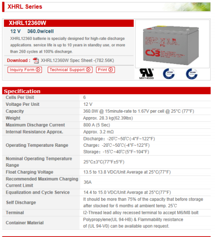 Discharge Power(W) 0.1P (W)<0.25P significa "potenza prelevata" dal 10% al 25% della potenza nominale e cioè dei 360 watt nel caso di una 100 amperora.