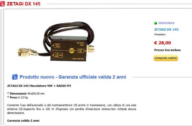 Non voglio mettere un'antenna particolare ma l'antenna del CB che ho tolto dal camper precedente. ( lemm da 90 cm. ) Io chiedo se con l'antenna CB ed il miscelatore che ho postato precedentemente il tutto funziona oppure c'è una tale perdita di ricezione o di trasmissione che non vale la pena.