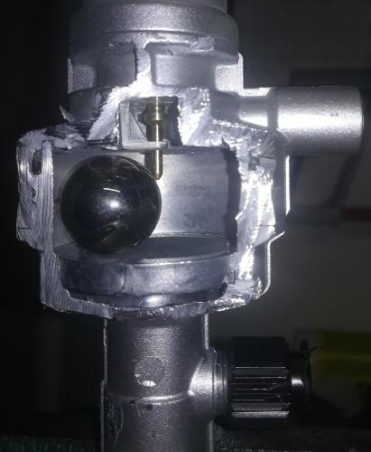 Il pulsante verde alza lo spillo e lo tiene sollevato finché tieni premuto. Poi lo spillo è tenuto su dalla pallina... Se ho capito bene per si che la portata di gas possa spostare la pallina? Domani provo a buttare aria col compressore e vedo se la sposta ma credo di no, la molla è dura!