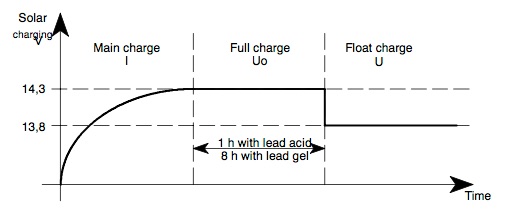non è proprio così che funziona . La maggior parte del ciclo di carica si compie in corrente ( è colei che genera il lavoro ) ad una tensione che può essere anche molto più bassa dei 14,4 che menzioni. Man mano che lepiastre della batteria acquisiscono cariche la tensione comincia a salire e viceversa la corrente scende. Per le batterie agm è molto importante che la corrente di ricarica sia limitata in un valore che il costruttore stabilisce . Di media si tende a caricare la batteria agm con una corrente massima di 1/10 la capacità nominale . Questo perche non essendoci un elettrolita liquido ad assorbire il calore ed evaporare la batteria agm ( sigillata ) potrebbe subire un aumento del volume dell'atmosfera interna ( effetto del calore ) e la plastica comincia a gonfiare e deformarsi . .