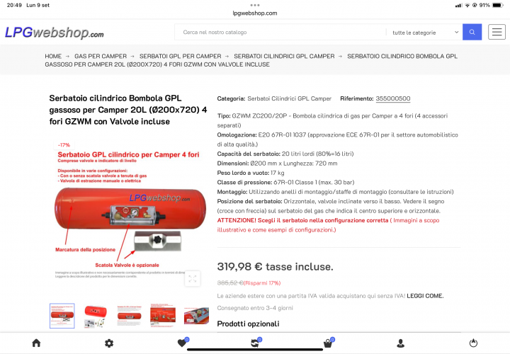Comunque io ancora non ho trovato chi fa l'omologazione a libretto di queste bombole ricaricabili (intendo quelle verticali come la alugas). Chiamato caravanBacci mi hanno indicato un loro installatore di fiducia ma non sapevano dirmi nulla a proposito delle bombole in questione (omologate r67/01) ma soltanto dei bomboloni fissi e relativi costi esorbitanti...