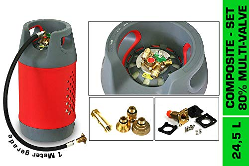 Komposit Tankflasche 24,5L inkl. 80% Multiventil & Adapter + Etui + Einbauset (HK gerade, 1,00m ger-ger) - Gasflasche wiederbefüllbar, befüllbare ...