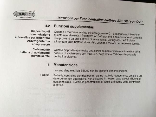 il "booster" ha lo scopo di "ingozzare" la BS, la potenza disponibile dall'alternatore è enorme, spesso supera le 100 A, le batterie, il genere, assorbono molta corrente all'inizio della carica per poi "addormentarsi", Magari fosse vero che la potenza disponibile dall'alternatore fosse enorme! Ma, forse, è meglio così, per la salvaguardia delle batterie! Poi spiego perché non ritengo indispensabile il booster ma, per esempio, ieri pomeriggio, alla partenza per il ritorno a casa dal ponte di Capodanno, dopo 4 notti (oltre 100 ore di Eberspaecher a 22° gradi interni ed esterna tra -4 e 10°), con la tensione ieri mattina, a 12.1 volt e, alla partenza, a 12.7 volt, portata su da 185 watt di pannelli fotovoltaici con camper al sole, in queste condizioni, il mio alternatore maggiorato, forniva 28A alle batterie servizio (due da 100Ah cad.): quindi, la potenza disponibile dall'alternatore non è enorme. Nel mio caso, è quella giusta, 25A su due batterie in parallelo (così dotato all'origine dall'allestitore) su due batterie rispetta la regola del 10% della potenza disponibile (25A su 200Ah).