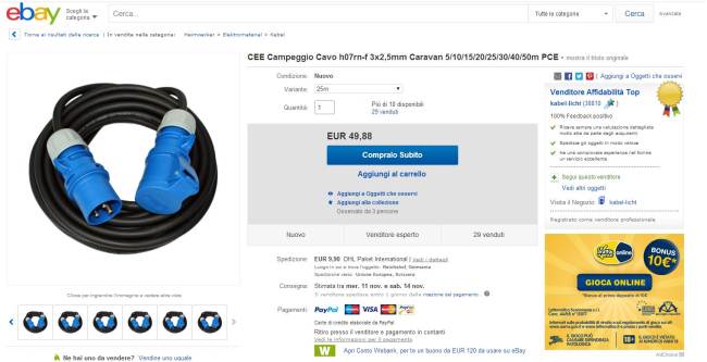 Il cavo che hai trovato è per utilizzo "all'interno"