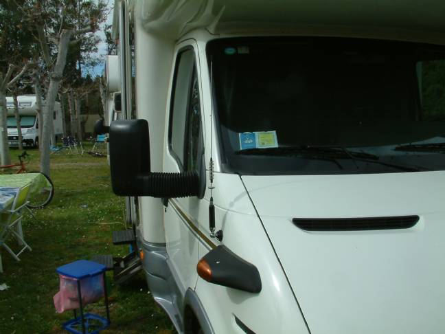 Lo specchio ha tre viti da 8mm se è come il mio, ho tolto lo specchietto, ho fatto una piastra che appoggia sul camper con i tre fori passanti per le viti, nella parte superiore la ho piegata ad L dove andrò ad inserire l'antenna.