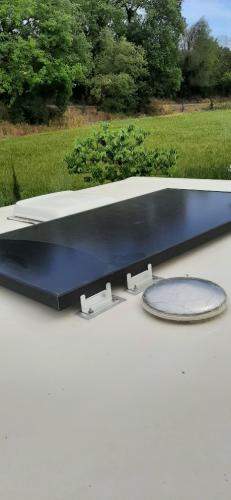 Per la questione doppio pannello/doppio regolatore ti ha già spiegato Marco i vantaggi... Per l'incollaggio sul tetto (non chiamiamolo foglio di alluminio) ci sono adesivi strutturali che assolvono completamente il lorocompito, però solo tu sai come è messo il tetto del tuo camper. Non sarai ne il primo ne l'ultimo ad incollare un pannello sopra un camper di 30 anni, magari compra l'adesivo, fai una prova incollando solo le staffe (ovviamente a misura per il pannello) e poi valuti, dopo un eventuale collaudo vedi come si comporta l'incollaggio e poi fissi il pannello sulle staffe. Queste sono le staffe in alluminio che tengono il mio pannello, si è vero che il tetto del mio camper ha solo 11 anni, ma il principio è lo stesso. Ciao