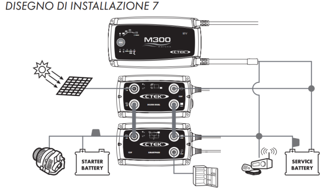 il 250 è un carica batterie intelligente con ricarica a più fasi ha due ingressi, uno da collegare alla BM/Alternatore, l'altro a un pannello solare o altro generatore (max 22 volt quindi pannelli da camper e non civili).Non innalza la tesnsione ma procede ad una carica delle batterie secondo la curva che trovi sul sito: Quindi carica della batteria più controllata rispetto a collegare direttamente l'alternatore e limitazione a max 20 Ampere, in modo da non fare prendere botte alla batteria. Lo smartpass serve se non hai una centralina che fa le stesse cose.. Ciao Davide