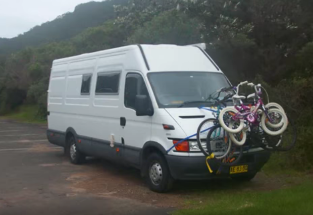 Il fermo immagine è tratto dal video sotto riportato. Si tratta di un tizio (verosimilmente siamo nel Regno Unito) che si è autocostruito il camperozzo, ed al minuto 7:46 si vede appunto il portabici