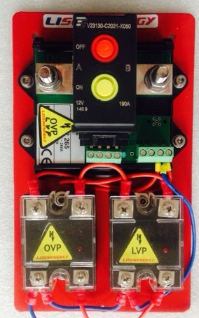Prima di tutto grazie delle risposte che devo ancora cercare di capire . Visto che non sono stato chiarissimo provo a spiegare esattamente cosa vorrei fare. Questa scheda che si vede sotto è quella che viene montata sull'ultimacella delle batterie al litio. Riceve le informazioni ( tensione e temperatura ) di ogni cella precedente. I parametri di tensione minima e massima vengono invece settati tramite dip switch sulla scheda della prima cella. La scheda out ha due relè a tre contatti . Uno cambia stato se una qualsiasi delle celle scende sotto la tensione minima impostata mentre l'altro relè cambia stato se una qualsiasi delle celle sale sopra una tensione massima. I due relè tornano nella posizione precedente quando le tensioni rientrano nella norma. Questi due relè potrebbero pilotare due linee indipendenti, ossia quella degli utilizzatori , da staccare in caso di sotto voltaggio e quella dei generatori da staccare in caso si sovra voltaggio. Visto il costo esagerato dei relè di potenza ho pensato di metterne 1 solo e staccare tutto sia in caso di sovra o sotto tensione. Quel relè bistabile della TYCO è relativamente economico rispetto alle soluzioni classiche che usano il Philippi TSA 265 ( + di 175 € ) che ha internamente una elettronica di sorveglianza tensione che diventa ridondante se vengono controllate costantemente le tensioni di ogni cella. Il TSA è comodo perché viene controllato semplicemente collegando un filo tra due morsetti che se interrotto sgancia il relè di potenza . Qui sotto un Philippi con due relè allo stato solido ( a sinistra sotto ) per consumare meno corrente. Senza relè alla stato solido il consumo sarebbe comunque non alto dell'ordine dei 25 mA . Sotto il dettaglio di questa scheda super economica venduta al prezzo di 359 € ( manco fosse d'oro e cablata da un chirurgo di fama mondiale ) La bobina del relè bistabile Tyco ha invece una resistenza da 4,5 ohm e una potenza max di 7 watt e non può stare in tensione permanente . Spero di essere stato il più chiaro possibile. Per Renzo07 ..... il Tyco non credo sia apribile per togliere i diodi o interrompere il circuito. Adesso mi studio per bene quello che avete suggerito PS: il tempo raccomandato di eccitazione bobina non è da 100 a 500 ms ma da 50 a 100 ms.... Coil excitation pulse length recommended/maximum 50 ms/100 ms