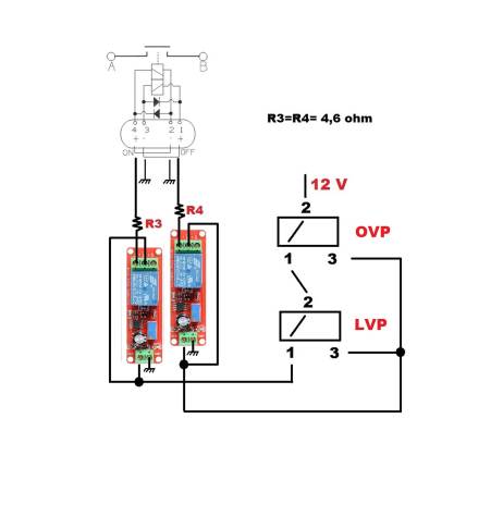 Buongiorno Renzo, Marco, Grinza e l'asino di Giorgio Cosa ne pensate di questo circuito ? Vantaggio ; è già fatto , costa una miseria ed è possibile regolare il tempo da 0 a 10 secondi con il trimmer. Piuttosto checomprare componenti sciolti, fare una schedina , metterci dei morsetti potrebbe essere una valida alternativa. Credo che la corrente di assorbimento delle schede NE555 sia irrisoria anche se non ho trovato il valore della resistenza in ingresso ma voi sicuramente la sapete. Le bobine del relè bistabile hanno una resistenza di 4,7 ohm per cui ho pensato di mettere in serie altre 4,7 ohm per limitare la corrente a circa 1,5 ampere. Ci sono controindicazioni che mi sfuggono ?