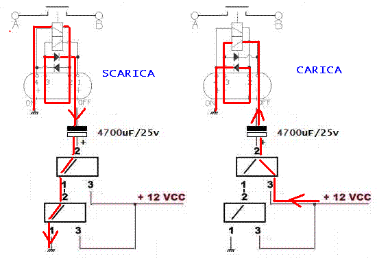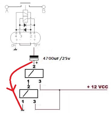Questo circuito è geniale in quanto non consuma nessuna corrente eccetto che nelle fasi di spostamento del relè bistabile C'è una cosa che però mi lascia perplesso. Non è che mettendo a massa diretta senza resistenze (quando si ha il collegamento come in figura 2-1 2-1 e con condensatore carico ) il condensatore spara fuori un picco di corrente dannoso per i due relè a tre contatti che possono reggere al max 2 ampere ? Ciao
