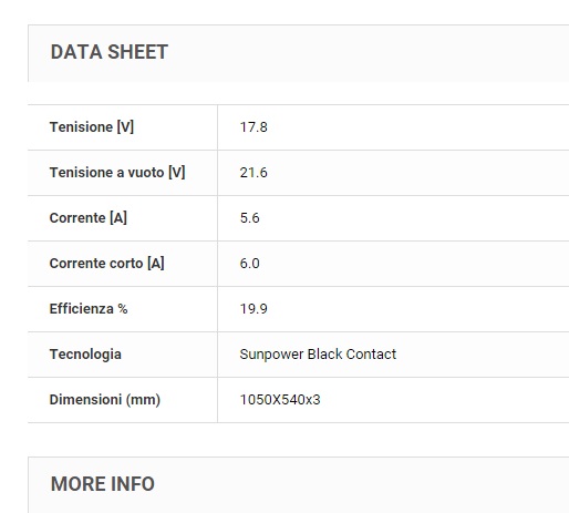 Ciao Gianni, ben rientrato. Riguardo al pannello flessibile dal peso di 2 kg, ad altissima efficienza: da 100 Watt... che sono sempre 100 Watt... Vorrei vedere l'altissima efficienza quando è surriscaldato dal sole, e quantosurriscalda il tetto e l'interno del camper. Senza contare il Data-Sheet, che ha qualcosa di particolare: cosa sarebbe la TENISIONE? [;)]73 de