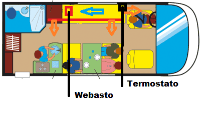 Ciao Ivan, il mio Webasto l'ho montato in fai da te ed è dentro una cassapanca, ho poi fatto una tubazione dedicata lunga circa 3 mt. e con 3 bocchette delle quali una sempre aperta, tutto qui. I termostato a rotellinaè posizionata vicino alla porta della guida in modo da poterlo accendere e spegnare allungando la mano mentre guido in quanto qualche volta lo tengo acceso anche in corsa specialmente appena partito e fuori fa particolarmente freddo. Anche l'aspirazione è dentro alla cassapanca. Sinceramente non mi sono mai posto dei pensieri perchè, dopo aver trovata faticosamente la giusta posizione della rotella del termostato la metto sempre li e, a seconda della necessità la sposto di poco in avanti o indietro ma non abbimo mai avuto cadute di temperatura tali da darci disagio. Di notte e per sole questioni di rumore usiamo sempre la Truma a gas ma le poche volte che abbiamo usato il Web siamo stati altrettanto bene pur avendo abbassato il termostato in quanto non ci piace dormire in un ambiente caldo. Considera che essendo un 2000 fa quel che può e l'ho montato più che altro un accessorio da emergenza ma, visto che ci soddisfa notevolmente, lo usiamo anche spesso. Quando la temperatura scende vicino allo 0°C e quindi va quasi costantemente al massimo diventando molto rumoroso per noi e per chi ci è vicino adiamo con la Truma. In definitiva l'ho montato ormai da 13 anni senza pormi domande ed a seguire conseguenti operazioni ma, dalla prima accensione, ha sempre funzionato come ci serviva; proprio per questo penso che la tua installazione abbia dei conflitti a livello di termostato. Ciao