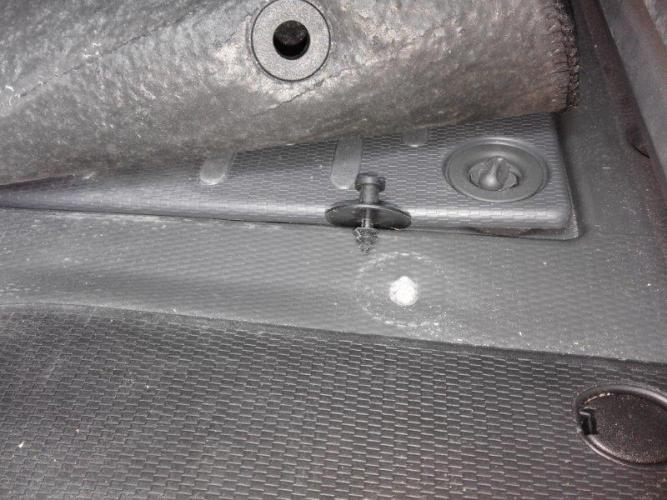 quel perno avvitato nella gomma del fondo della cabina, non è originale, lo ha messo chi ha messo le pedanine di moquette.