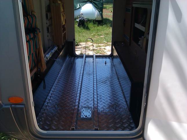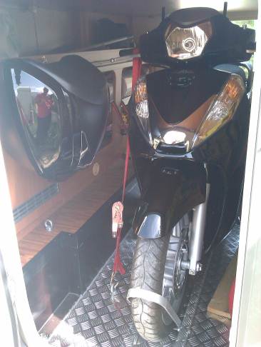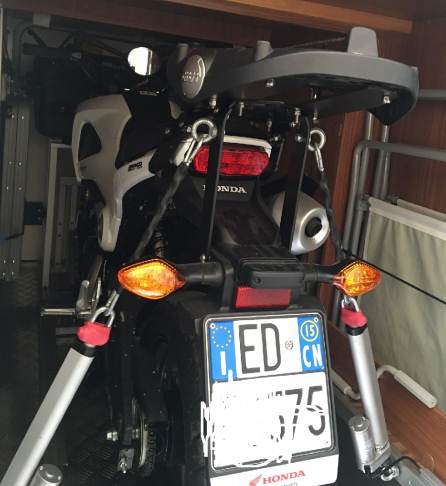 Per il caricamento ho organizzato una rampa in alluminio, che si ripone nello spazio fra lo scooter e la coda del camper.