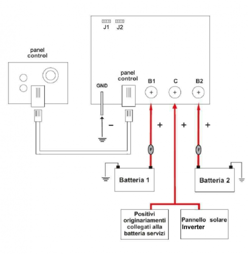 Anche io ho un Energy Powe Evolution che ricarica le batterie in viaggio. Poi ho un pannello spolicristallino che le ricarica entrambe che sono collegate in parallelo diretto ed inoltre un diodo+resistenza ( ) mantienecarica e in forma anche la BM. Questa configurazione funziona bene e risponde ai dettami dell'elettrotecnica di base ed è anche quella cghe costa meno. Che devi usare una batteria alla volta quale elettronico o elettrotecnico disinteressato te lo ha detto? Marco.