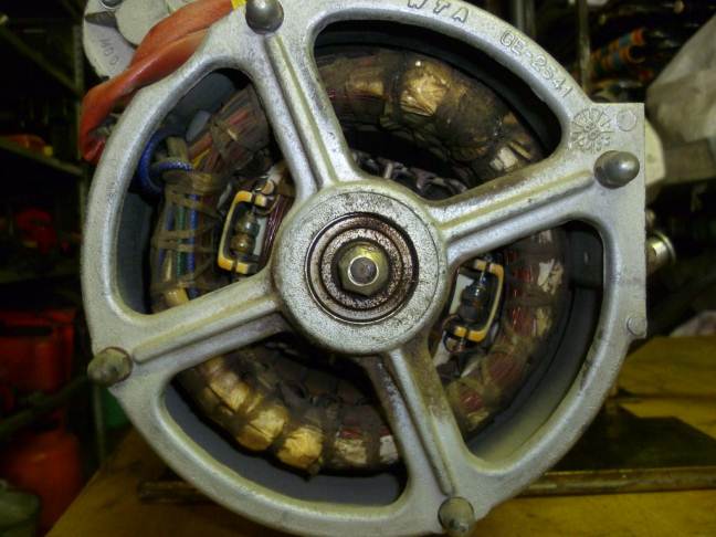 Non mi riferisco ai diodi all'interno del rotore, ma di un componente che credo che sia un diodo raddrizzatore dato che ha due capi AC e altri due '+' e '-' dove convergono i cavi che escono dal rotore. Se riesco domani posto la foto.