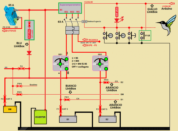 Uno domanda, il magnetotermico che hai messo è la soluzione migliore, più sicura ma sicuramente non è attaccato alle batterie come dovrebbe, hai un pezzo di cavo che in caso di problemi tra batteria e magnetotermico potrebbe creare casini. Un fusibile subito in uscita dalla batteria sarebbe l'ideale