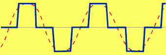 Ciao, sarà mica questo il tuo inverter: intanto è da 1500 watt, e non da 1700. Ed è un'onda modificata. Leggi l'avvertenza a pie pagina del link. Tutti scrivono onda sinusoidale modificata. Nulla di più falso, quandola sinusoide non c'è, mi spiego. L'inverter genera un'onda quadra, che puoi vedre al centro dell'immagine: poi viene filtrata e si genera l'onda quadra modificata che vedi in basso. La sinusoide, in alto, non ha spigoli, tratti verticali e orizzontali, ma ha solo linee curve. Qui puoi vedere la sovrapposizione delle due forme d'onda: la sinusoide tratteggiata in rosso, e la quadra modificata in blu. I motori funzionano con la sinusoide, e mal digeriscono la quadra. P.S. era chiaro che qualcuno ti aveva consigliato l'accensione del motore per sopperire all'immane prelievo di corrente dalla BS. Far transitare corrrente dall'impianto di ricarica della BS non è buona cosa: il cavo è di sezione 4/6 mm2 che è risicato per il passaggio di importanti correnti, il fusibile lamellare può saltare costringendo il frigo ad alimentarsi dalla BS e non dalla BM con il motore in moto, i contatti del relè parallelatore possono bruciarsi. Il tuo installatore sarà vent'anni che fa impianti , ma forse un poco di studio dell'impianto di un camper non gli farebbe male... parere mio. [;)]73 de